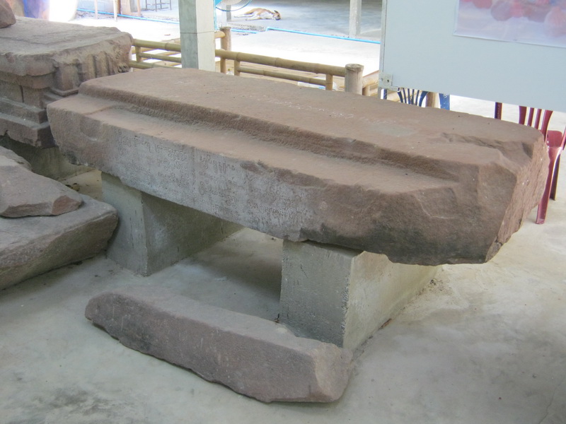 ชิ้นส่วนประกอบอาคารหินทรายแดงซึ่งพบจารึกดอนเมืองเตย
