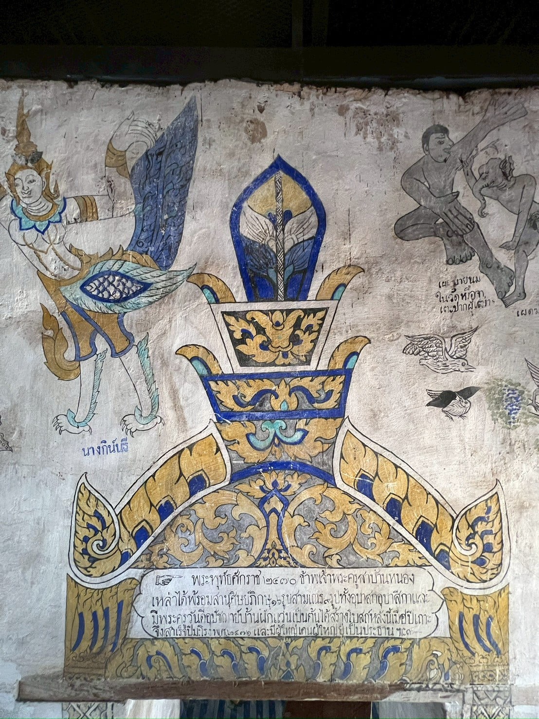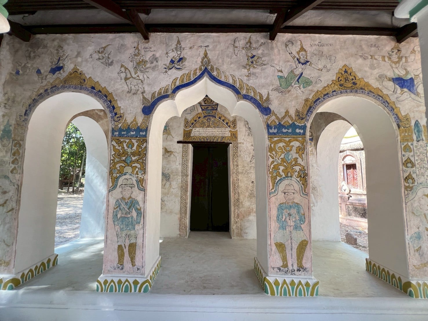 ตั้งอยู่ภายในวัดบ้านหนองเหล่า ตำบลหนองเหล่า อำเภอเขื่องใน จังหวัดอุบลราชธานี ลักษณะเป็นอาคารรูปทรงสี่เหลี่ยมผืนผ้า ขนาด 6 ห้อง หลังคาทรงจั่ว มุงด้วยไม้แป้นเกล็ด ผนังห้องด้านหลังก่อทึบ ผนังด้านข้างเจาะเป็นช่องหน้าต่าง ด้านละ 3 ช่อง ส่วนด้านหน้าทำเป็นมุขและพาไล ที่หน้าบันมีภาพจิตรกรรม ลายเทพพนม ยักษ์ เทวดานางฟ้าลายดอกไม้และเครือเถา นอกจากนี้ก็มีภาพจิตรกรรมปรากฏอยู่ด้านหน้าเสาของมุขและเสารองรับพาไล โดยเขียนเป็นภาพทหารแต่งกายชุดเครื่องแบบอย่างตะวันตก ลิงและเทวดา ที่ด้านบนและด้านข้างประตูเขียนเป็นภาพตัวละครในนิทานพื้นบ้าน และภาพนรกภูมิ เช่น ภาพนางมัจฉา ภาพสินไช มีจารึกระบุชื่อผู้สร้างและระยะเวลาที่สร้างอุโบสถว่า “พระพุทธ์ศักราช ๒๔๗๐ ข้าพเจ้าครูสาบ้านหนองเหล่าได้พร้อมสานุศิษย์ภิกษุ ๑๖ รูบ สามเณร ๙ รูบ ทั้งอุบาสกอุบาสีกาและมีพระครูวันดีอุปัชฌาย์บ้านผักแว่นเป็นต้นได้สร้างอุโบสถหลังนี้เมื่อปีเถาะ จึงสำเร็จปีมะโรง พ.ศ. ๒๔๗๑ และมีผู้ใหญ่เคนผู้ใหญ่ยู่เป็นประธาน”