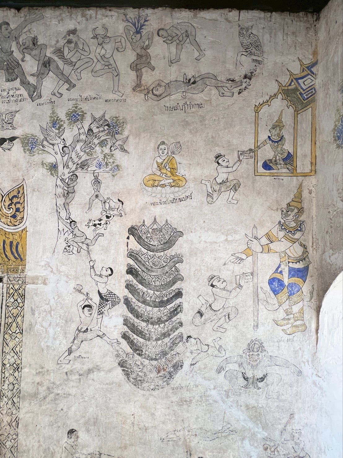 ตั้งอยู่ภายในวัดบ้านหนองเหล่า ตำบลหนองเหล่า อำเภอเขื่องใน จังหวัดอุบลราชธานี ลักษณะเป็นอาคารรูปทรงสี่เหลี่ยมผืนผ้า ขนาด 6 ห้อง หลังคาทรงจั่ว มุงด้วยไม้แป้นเกล็ด ผนังห้องด้านหลังก่อทึบ ผนังด้านข้างเจาะเป็นช่องหน้าต่าง ด้านละ 3 ช่อง ส่วนด้านหน้าทำเป็นมุขและพาไล ที่หน้าบันมีภาพจิตรกรรม ลายเทพพนม ยักษ์ เทวดานางฟ้าลายดอกไม้และเครือเถา นอกจากนี้ก็มีภาพจิตรกรรมปรากฏอยู่ด้านหน้าเสาของมุขและเสารองรับพาไล โดยเขียนเป็นภาพทหารแต่งกายชุดเครื่องแบบอย่างตะวันตก ลิงและเทวดา ที่ด้านบนและด้านข้างประตูเขียนเป็นภาพตัวละครในนิทานพื้นบ้าน และภาพนรกภูมิ เช่น ภาพนางมัจฉา ภาพสินไช มีจารึกระบุชื่อผู้สร้างและระยะเวลาที่สร้างอุโบสถว่า “พระพุทธ์ศักราช ๒๔๗๐ ข้าพเจ้าครูสาบ้านหนองเหล่าได้พร้อมสานุศิษย์ภิกษุ ๑๖ รูบ สามเณร ๙ รูบ ทั้งอุบาสกอุบาสีกาและมีพระครูวันดีอุปัชฌาย์บ้านผักแว่นเป็นต้นได้สร้างอุโบสถหลังนี้เมื่อปีเถาะ จึงสำเร็จปีมะโรง พ.ศ. ๒๔๗๑ และมีผู้ใหญ่เคนผู้ใหญ่ยู่เป็นประธาน”